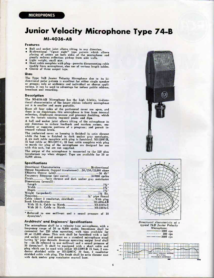 The earlier 74A "Junior Velocity" dated from 1936; that model designated MI-4035 by RCA, and in turn, was the successor to the PB 90, which was released around 1932, meant for broadcasting and public address.